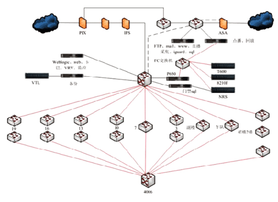 內(nèi)部網(wǎng)絡(luò)包含了悉數(shù)大樓的網(wǎng)絡(luò)構(gòu)造和各種運用,詳細(xì)的運用有:新聞稿流通體系、物資辦理體系、磁帶辦理體系、門禁花費體系、成本核算體系、考勤體系、內(nèi)部網(wǎng)站、DNS解析效勞、VRV桌面辦理體系、卡巴斯基網(wǎng)絡(luò)版殺毒軟件、熊貓硬件防毒墻、上彀行動辦理、網(wǎng)強(qiáng)網(wǎng)管體系、IPS侵略檢查體系、機(jī)房監(jiān)控體系、VTL虛擬帶庫備份體系、NRS疾速康復(fù)體系。