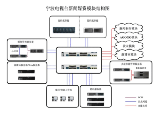 寧波電視臺新聞網(wǎng)絡(luò)體系是一個將核算機(jī)網(wǎng)絡(luò)文稿,非編制造,媒體財物辦理等體系有用聯(lián)系在一起的數(shù)字化網(wǎng)絡(luò)體系。體系中運用了核算機(jī),網(wǎng)絡(luò),存儲等技能。體系各環(huán)節(jié)彼此相關(guān),形成了新聞采編全體。新聞制播網(wǎng)按功用模塊能夠劃分為新聞制造模塊、媒資域模塊、演播室模塊、錄入模塊等其構(gòu)造圖如下: